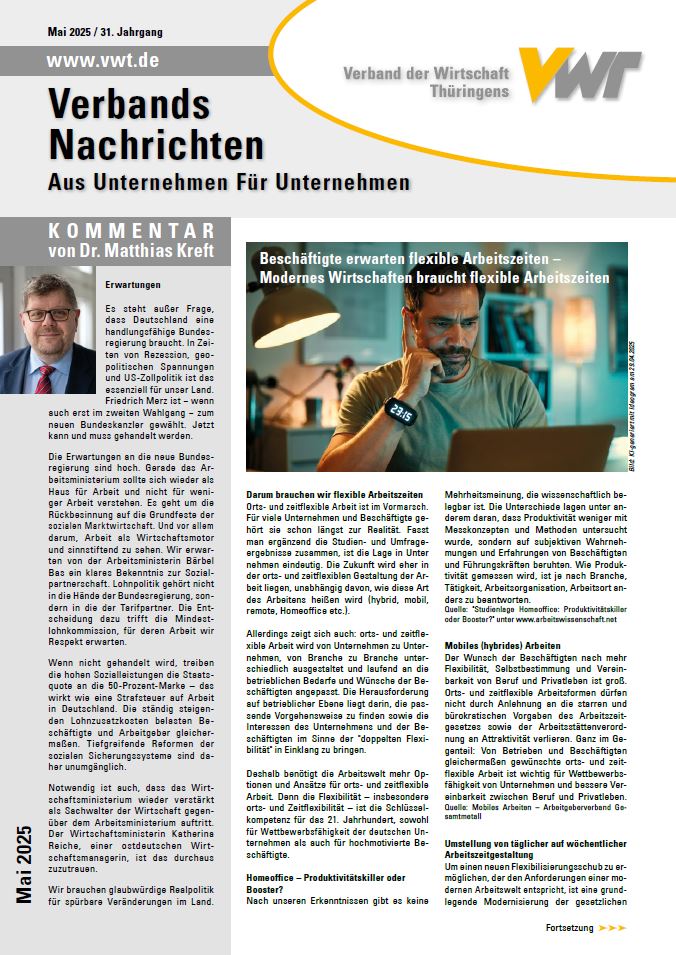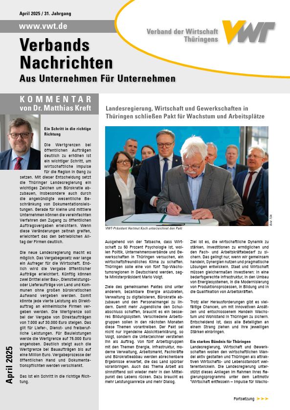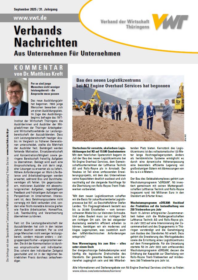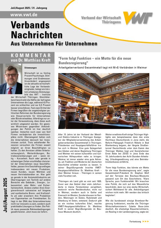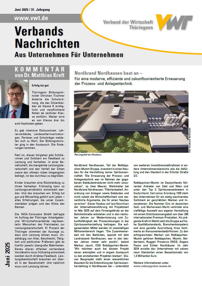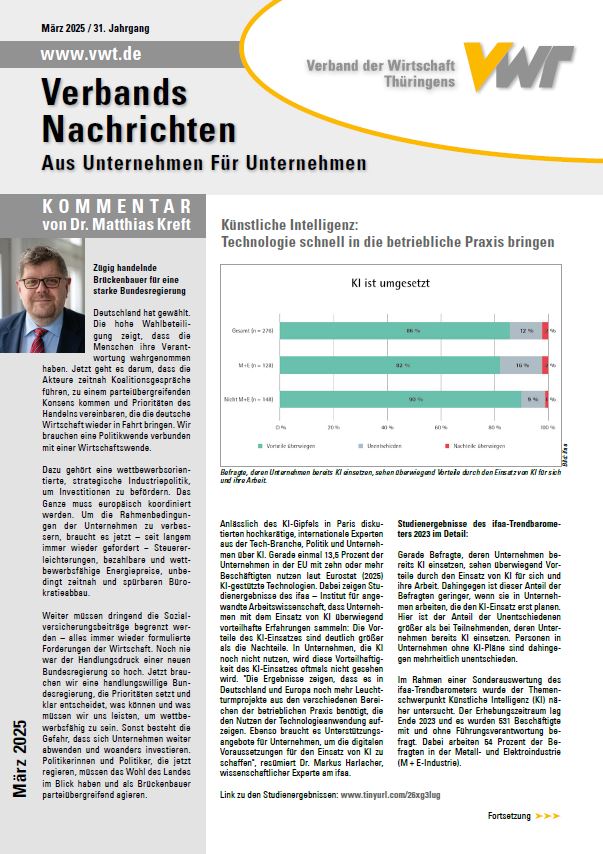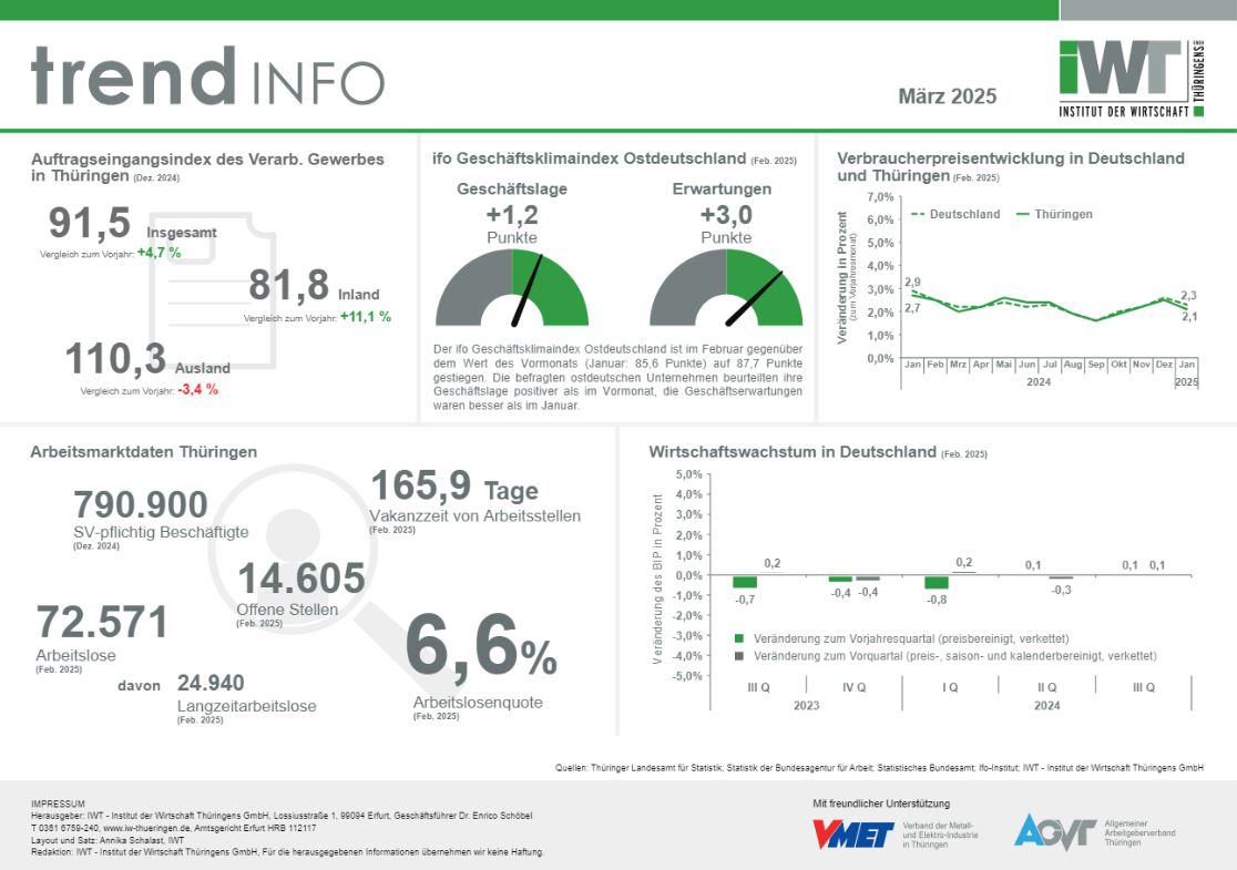 Die TrendINFO wird im gemeinsamen Auftrag des Verbandes der Metall- und Elektro-Industrie in Thüringen (VMET) und des Allgemeinen Arbeitgeberverbandes Thüringen (AGVT) von der IWT - Institut der Wirtschaft Thüringens veröffentlicht.