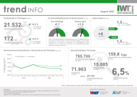 Die TrendINFO gibt einen grafischen Überblick zur wirtschaftlichen Entwicklung in Thüringen. Sie bietet auch einen Überblick ausgewählter Wirtschaftszweige des Verarbeitenden Gewerbes in Thüringen. Des Weiteren enthält Sie die Ergebnisse der Quartalsumfragen zur Entwicklung der Verbandsmitglieder.
